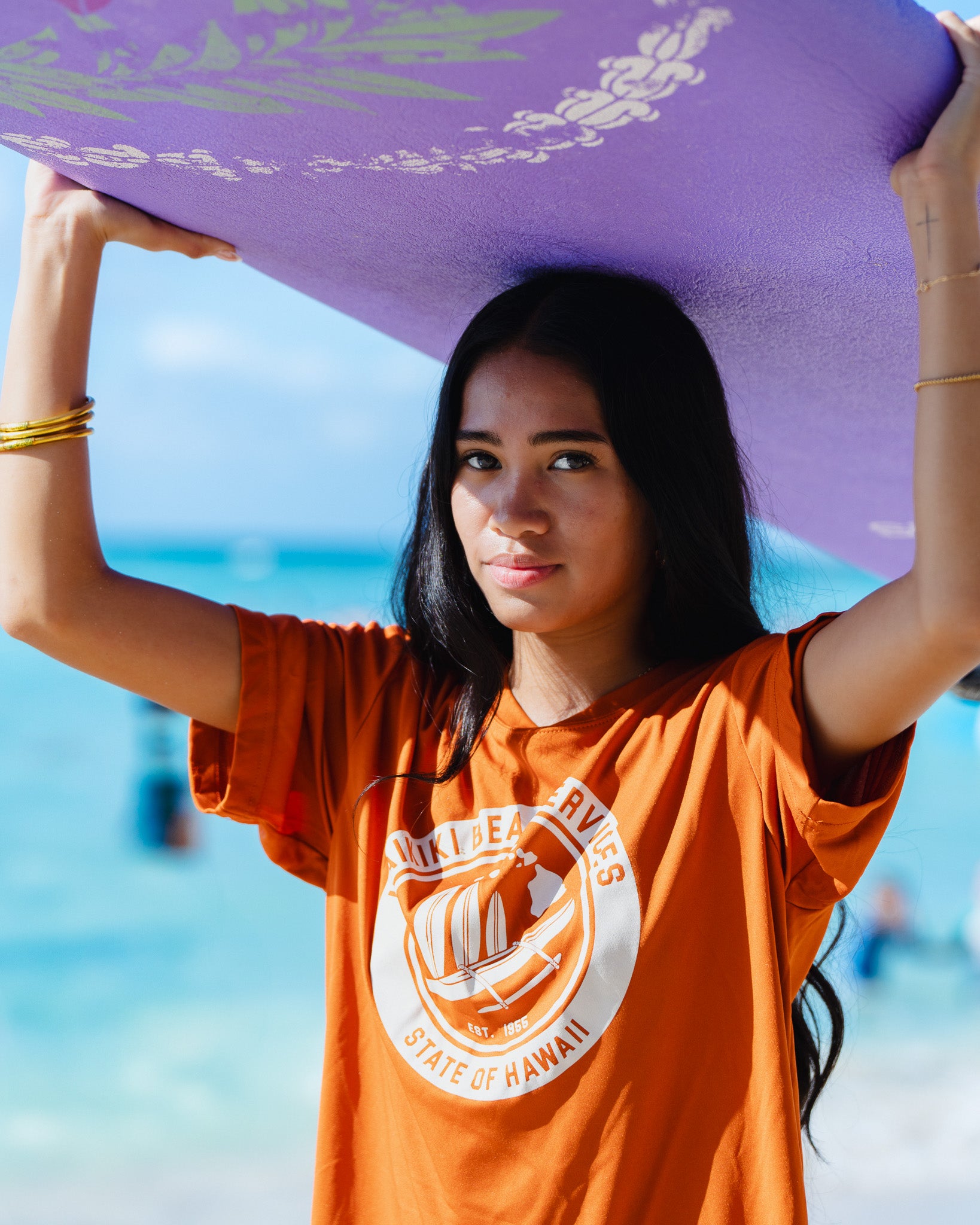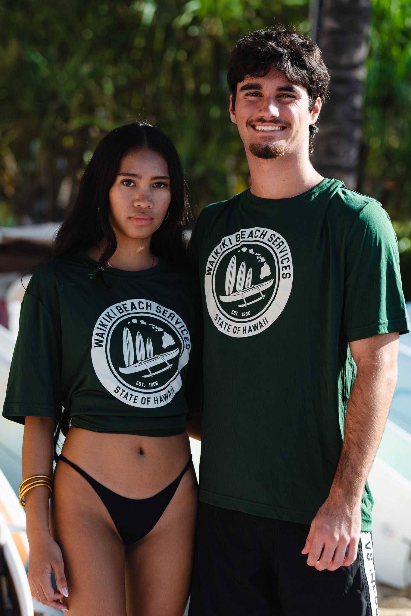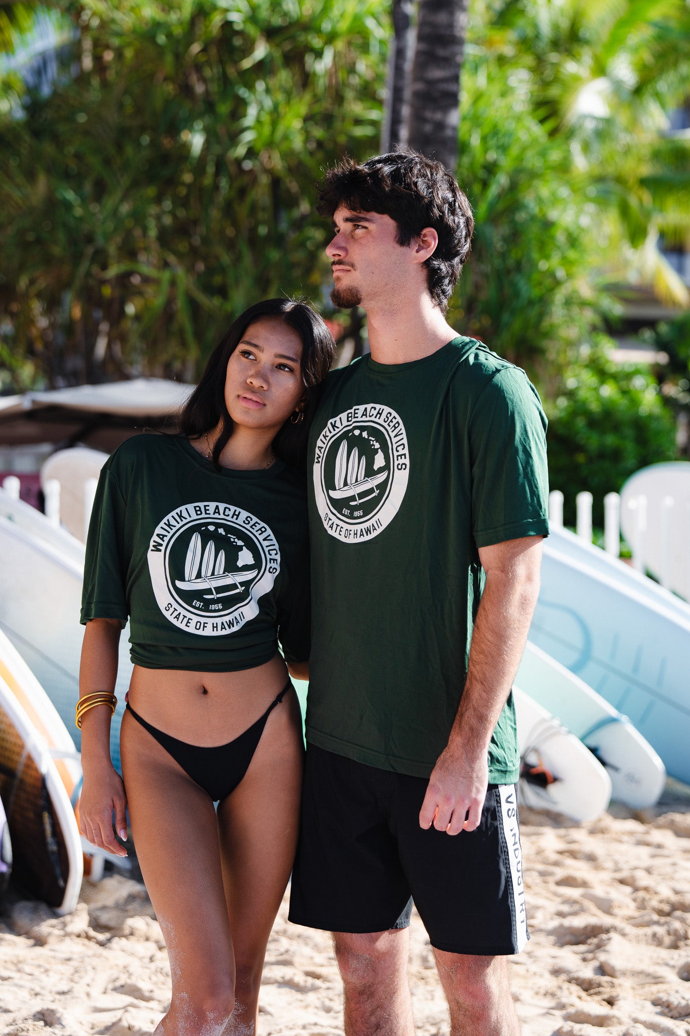 The official Waikīkī Beach Services logo printed on our most popular fit rash guard. Stay safe from the sun with our UPF 50+ shirts, made for surfing, swimming and sunning!