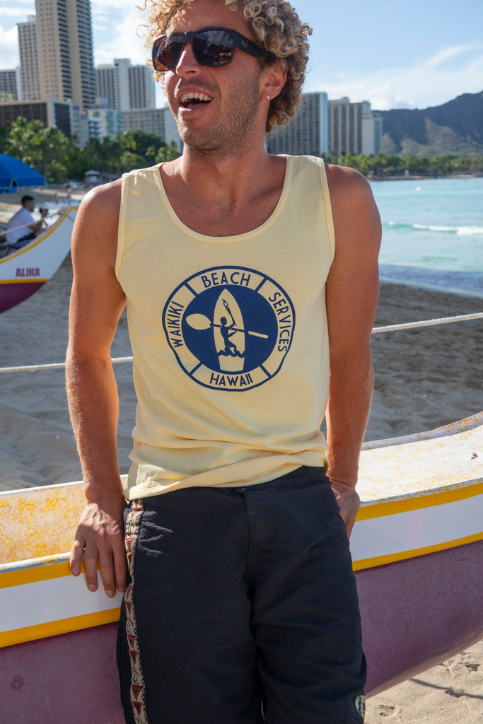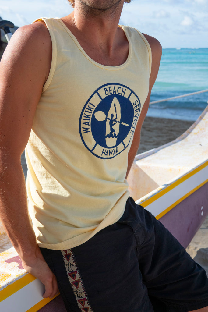 WBS Old School Original Tank - S / Butter / Navy Blue is backordered and will ship as soon as it is back in stock.